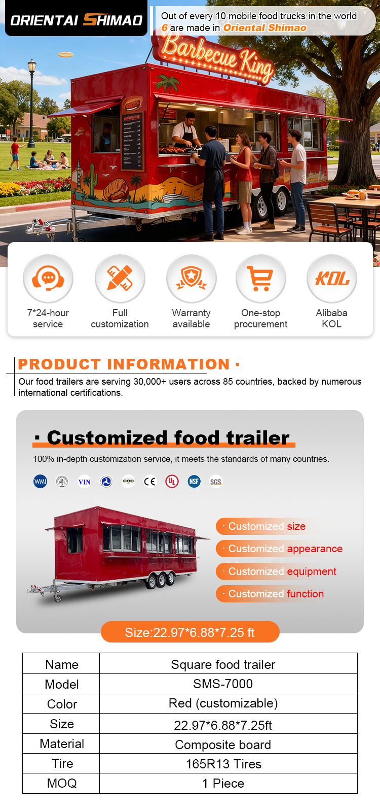We kunnen Food Catering Trailers-certificeringen aanbieden: DOT, CE, SGS, SCI, ISO, COC,
