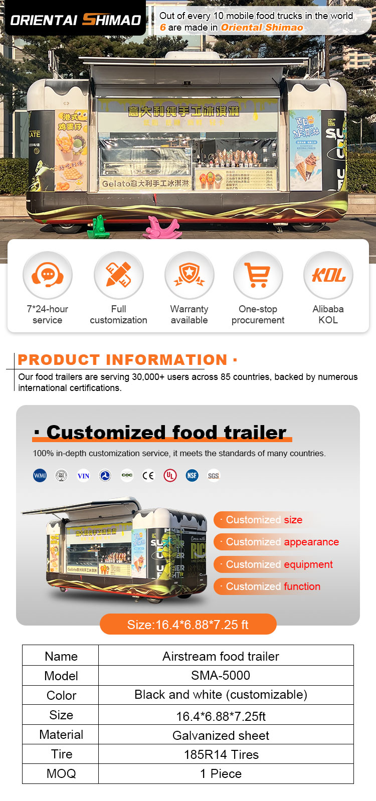 Mobiele cateringaanhangwagen Streetfood-hotdogkar Volledig uitgeruste voedselaanhangwagen Foodtruck
