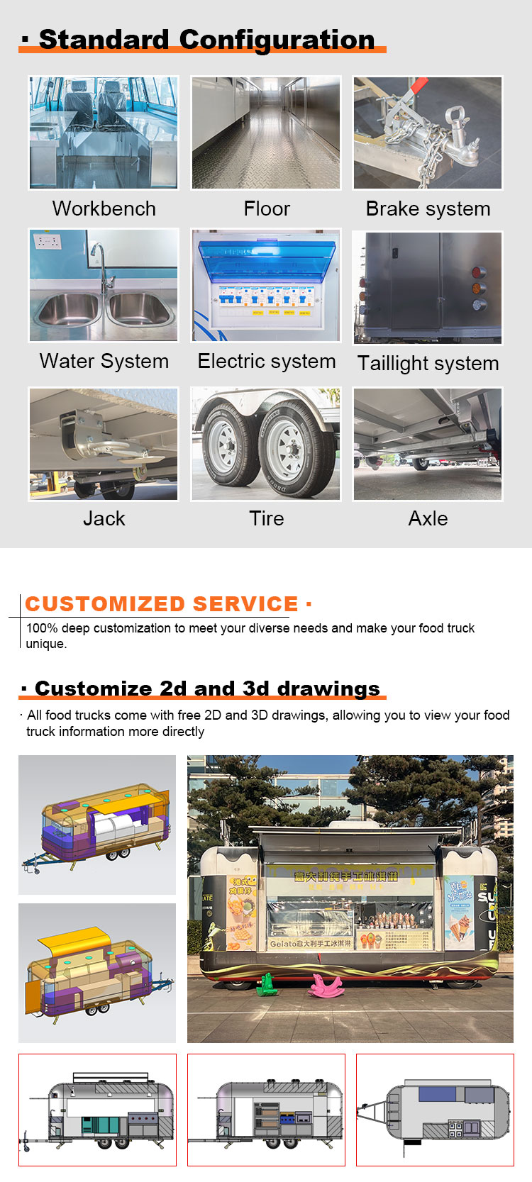 Voedselwagen Mobiele keuken Commerciële restaurantapparatuur Catering Elektrische voedselaanhangwagen Straatgebruik Foodtruck