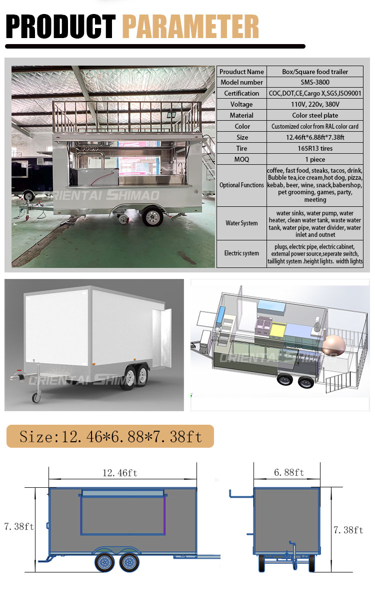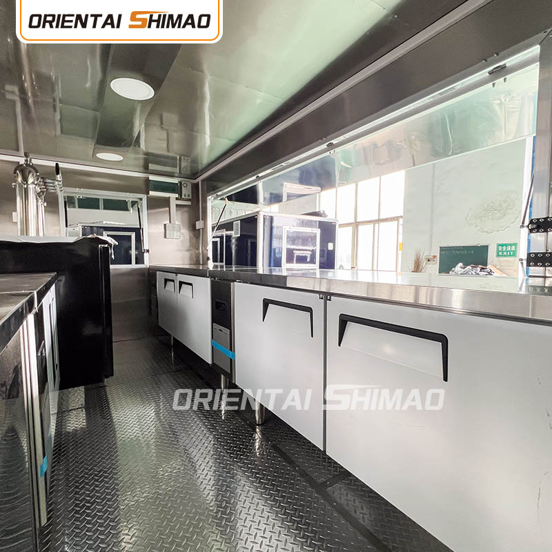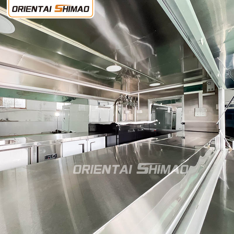 Belangrijker nog is dat de flexibele en veelzijdige zakelijke aanpak van Oriental Shimao Franchise-Ready Food Trailer perfect is aangepast aan het snel veranderende tempo van het moderne leven. Of het nu gaat om de lunchdrukte in de zakenwijk of de vrije tijd in de avond, het bedrijf kan zijn strategie snel aanpassen om tegemoet te komen aan de cateringbehoeften van verschillende mensen op verschillende tijdstippen. Dit ongekende aanpassingsvermogen zorgt er niet alleen voor dat Oriental Shimao Franchise-Ready Food Trailer opvalt in de zeer competitieve cateringmarkt, maar maakt het ook een belangrijke drijvende kracht achter innovatie en het zetten van trends in de industrie.
