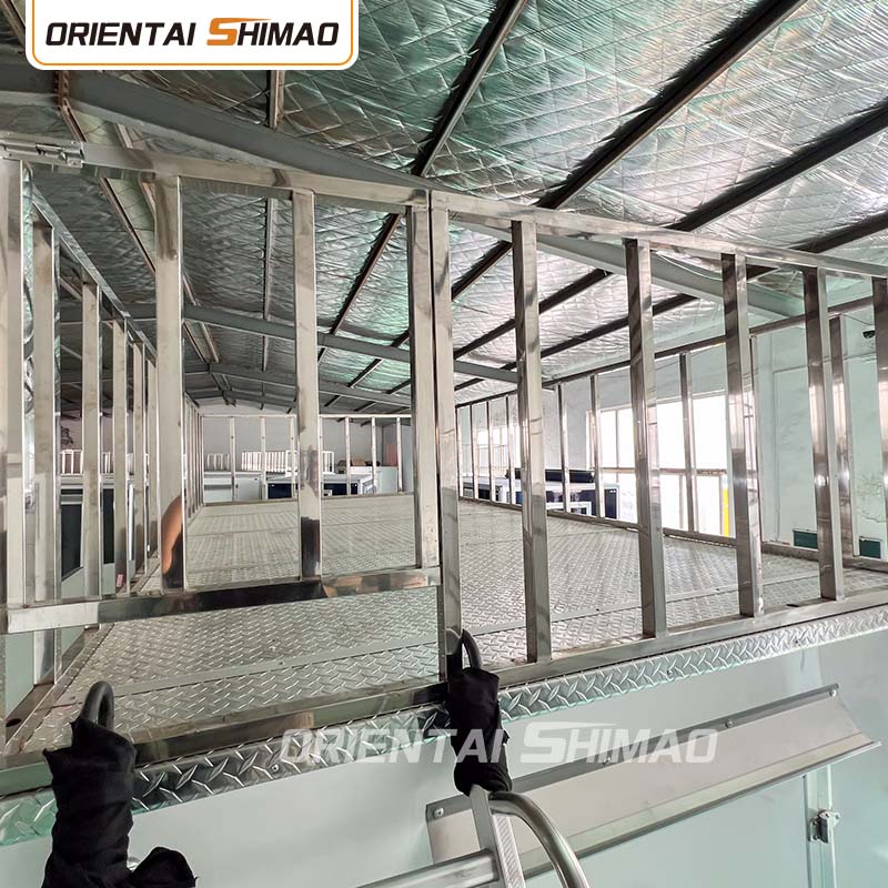 Het zorgvuldige ontwerp van de interne structuur weerspiegelt het ultieme streven naar voedselveiligheid en hygiëne. Het in de sandwich gevulde polyesterschuim zorgt niet alleen voor een goede thermische isolatie, zodat het voedsel zowel in warme als koude seizoenen de beste smaak kan behouden, maar vermindert ook het totale gewicht vanwege de lichtgewicht eigenschappen, waardoor het gemakkelijk te verplaatsen en te vervoeren is. Vermeldenswaard is ook dat de binnenruimte is gemaakt van roestvrij staal, wat niet alleen corrosiebestendig en gemakkelijk schoon te maken is, maar ook effectief de groei van bacteriën tegengaat, zodat elke operator aan het einde van een drukke dag gemakkelijk en snel de schoonmaakwerkzaamheden kan voltooien en ervoor kan zorgen dat de hygiëne van de foodtruck altijd hetzelfde is.