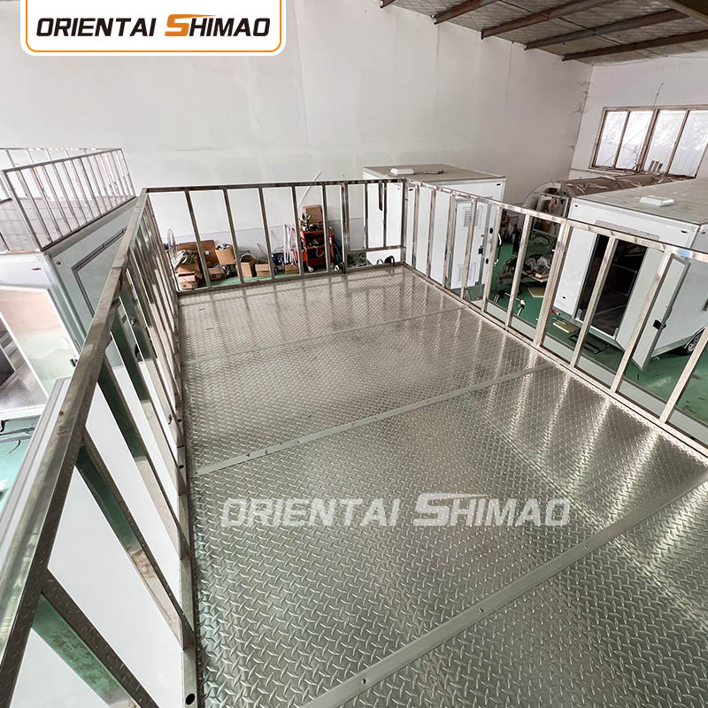 Het ontwerp van de vloer is zelfs nog ingenieus, waarbij een drielaagse structuur is toegepast om meerdere beschermende effecten te bereiken. De onderste laag is gemaakt van glasvezelversterkt plastic (FRP), dat uitstekende water- en vochtbestendige prestaties heeft en effectief voorkomt dat bodemvocht in het interieur van de foodtruck binnendringt; de middelste laag is gemaakt van insectenwerende houten planken geïmporteerd uit Australië, die speciaal zijn behandeld met een natuurlijke insectenwerende functie, waardoor een solide verdedigingslinie voor de voedselveiligheid wordt opgebouwd; en de toplaag is geplaveid met duurzame aluminium planken, die niet alleen antislip en slijtvast zijn, maar ook de algehele esthetiek en duurzaamheid verbeteren, waardoor gasten op de best mogelijke manier van hun eten kunnen genieten. De bovenste laag is bedekt met een sterke en duurzame aluminiumplaat, die niet alleen antislip en slijtvast is, maar ook de algehele esthetiek en duurzaamheid verbetert, waardoor de veiligheid en het comfort van de gasten wordt gegarandeerd wanneer ze van hun eten genieten.