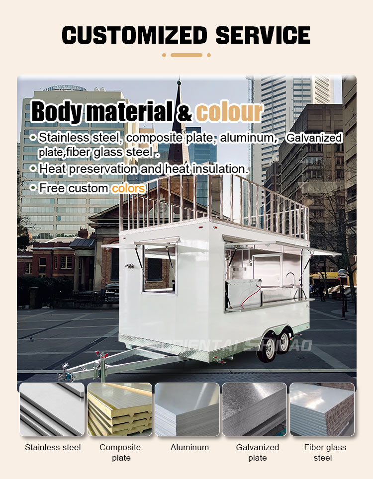 Bij het bespreken van de superieure kwaliteit van de Oriental Shimao Dessert Food Truck is het belangrijk om de zorgvuldig geselecteerde en ingenieuze combinatie van materialen te vermelden die de kar niet alleen zijn unieke duurzaamheid geven, maar ook de praktische bruikbaarheid en hygiënenormen aanzienlijk verbeteren, zodat elke klant kan genieten van een veilige en comfortabele eetervaring.