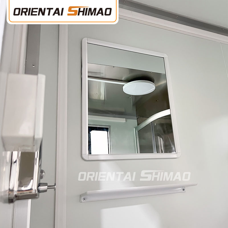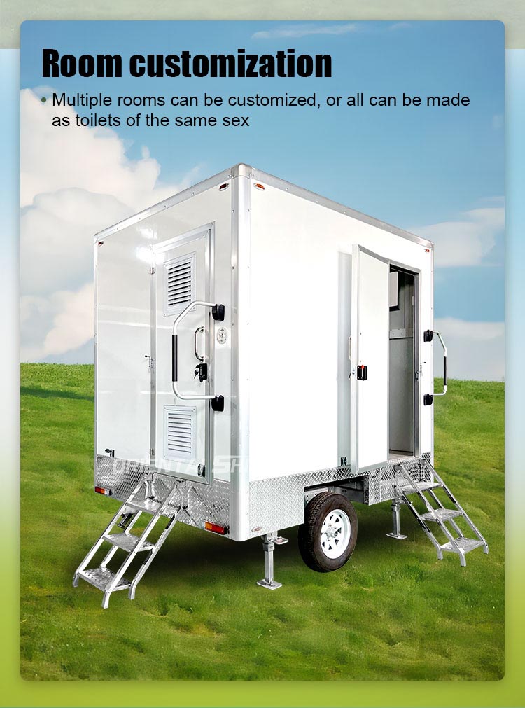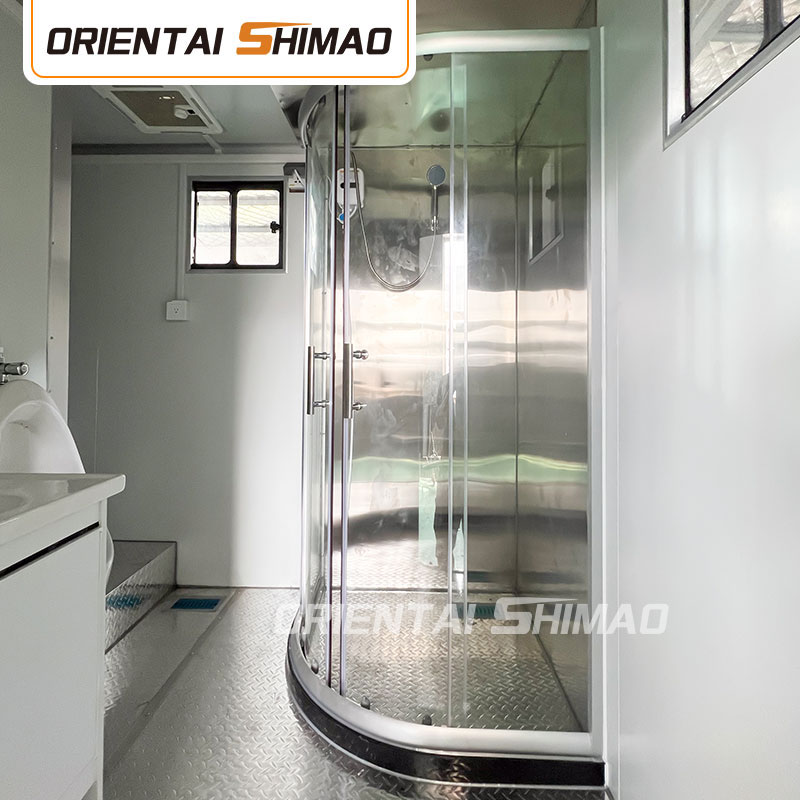 Modulair ontwerp: deze sanitairwagen heeft een modulair ontwerp. Gebruikers kunnen het aantal eenheden en configuraties kiezen op basis van de werkelijke behoeften, zoals een eenpersoonskamer, tweepersoonskamer of familiekamer, enz., om flexibel aan de behoeften van verschillende gelegenheden te voldoen. Elke unit is voorzien van een eigen ventilatiesysteem, wastafel en verlichting om comfort en privacy te garanderen.