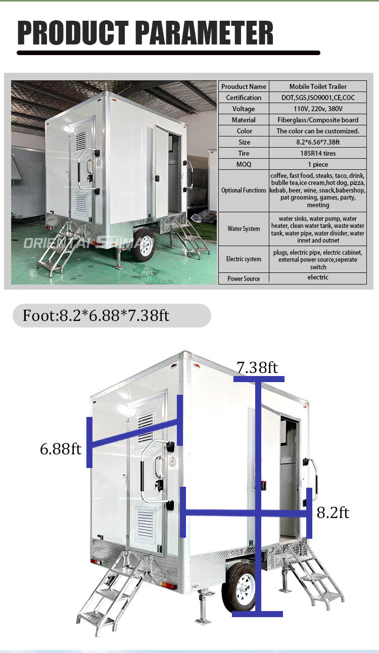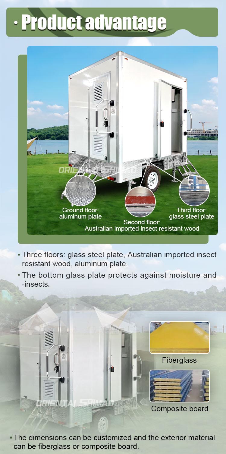 Oriental Shimano Festival draagbaar toilet voor evenementen is een draagbare toiletoplossing die is ontworpen om te voldoen aan de hoogwaardige behoeften voor alle soorten grootschalige evenementen, bouwplaatsen, buitenkampen en noodhulplocaties. Door geavanceerde milieutechnologie te combineren met een gebruiksvriendelijk ontwerp, biedt dit toiletvoertuig een comfortabele, veilige en efficiënte toiletbezoekervaring, waardoor het de beste keuze is voor moderne tijdelijke sanitaire voorzieningen.