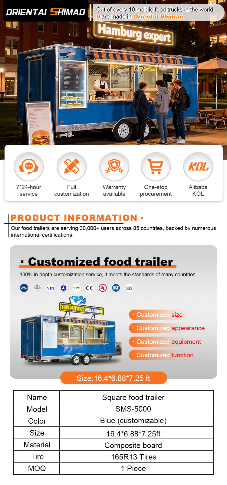 We kunnen mobiele voedselkarren te koop aanbieden Certificeringen: DOT, CE, SGS, SCI, ISO, COC,