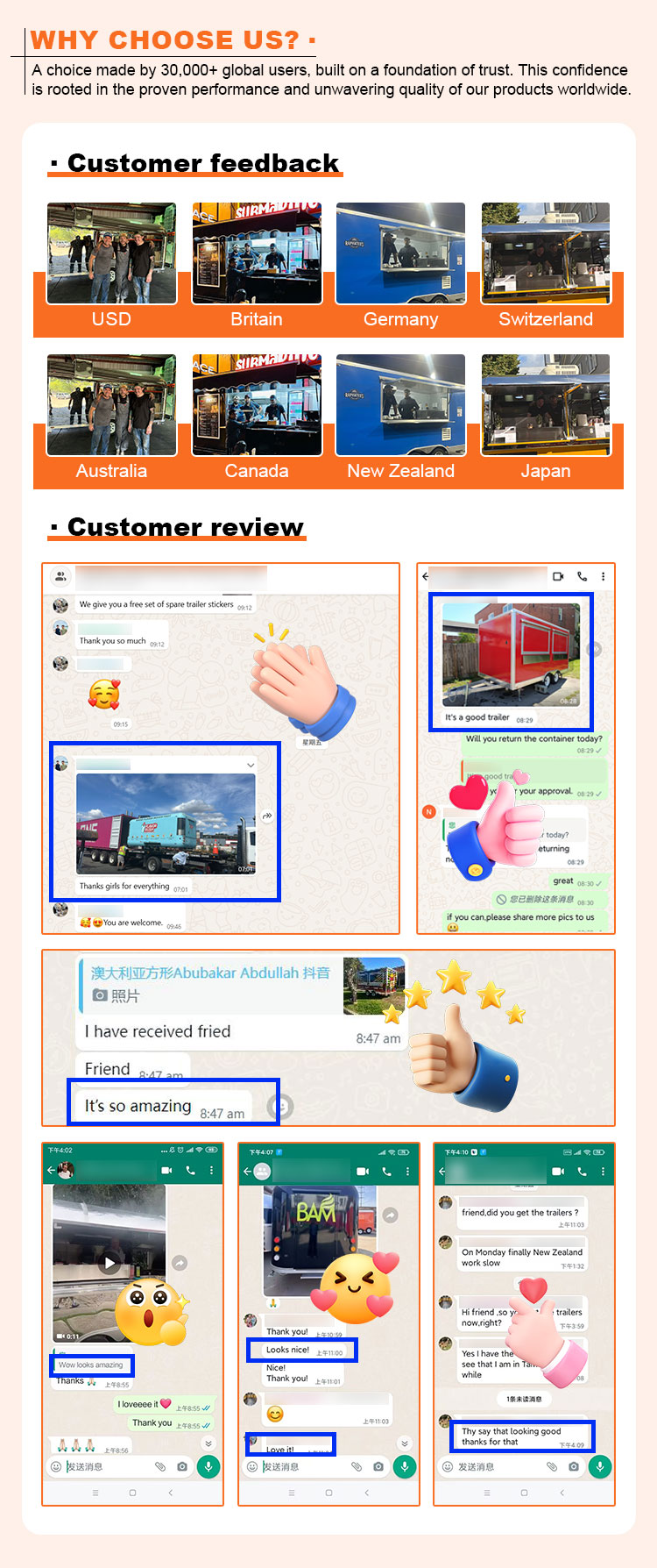 Garantieservice: Bied binnen een bepaalde periode garantieservice en voer tijdige reparatie en vervanging uit van de problemen van de foodtruck.