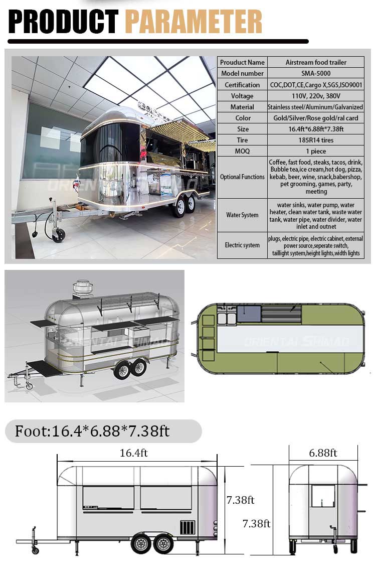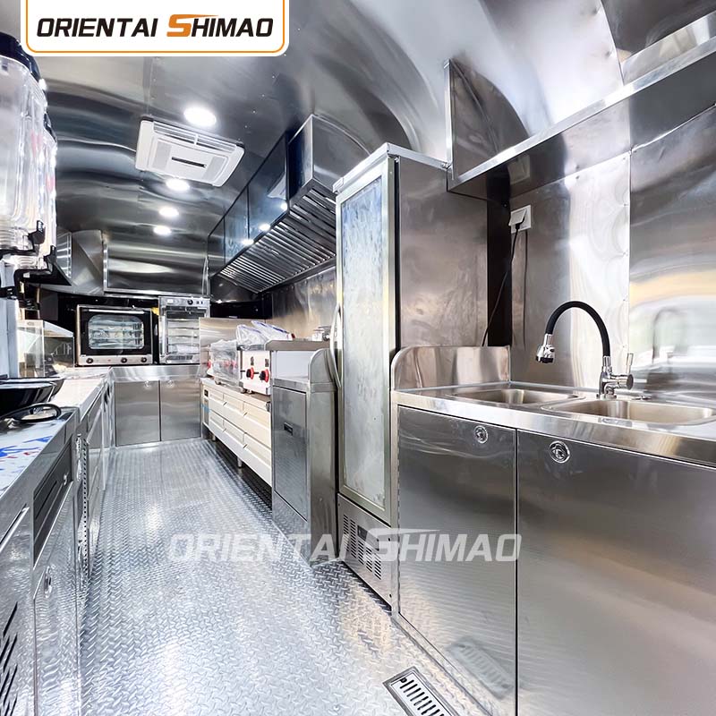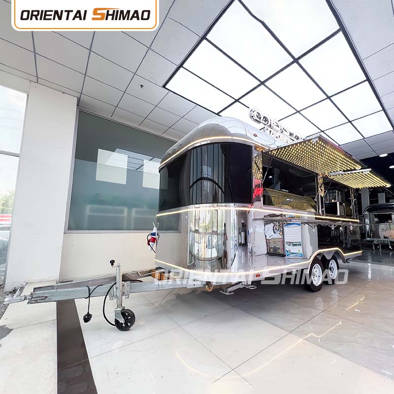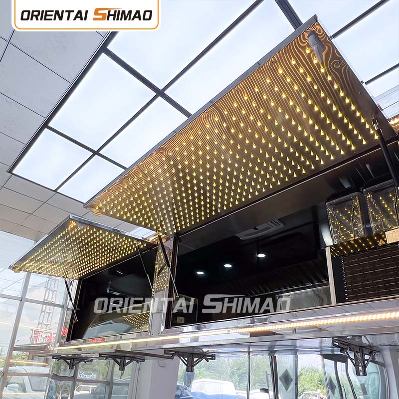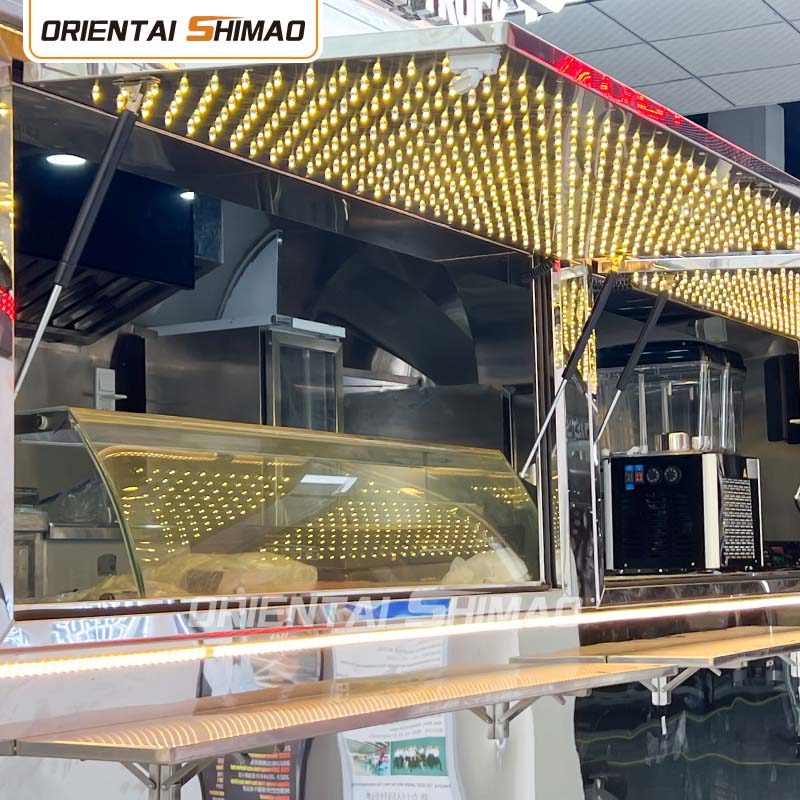 Goudkleurig RVS: de buitenkant van de foodtruck is gemaakt van hoogwaardig goudkleurig RVS. Dit materiaal heeft niet alleen een uitstekende corrosie- en slijtvastheid, maar ook de gouden uitstraling vergroot de visuele schoonheid en het hoogwaardige gevoel, waardoor de foodtruck zich in diverse omgevingen kan onderscheiden.