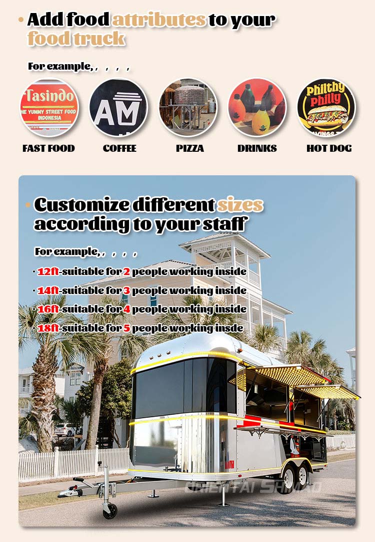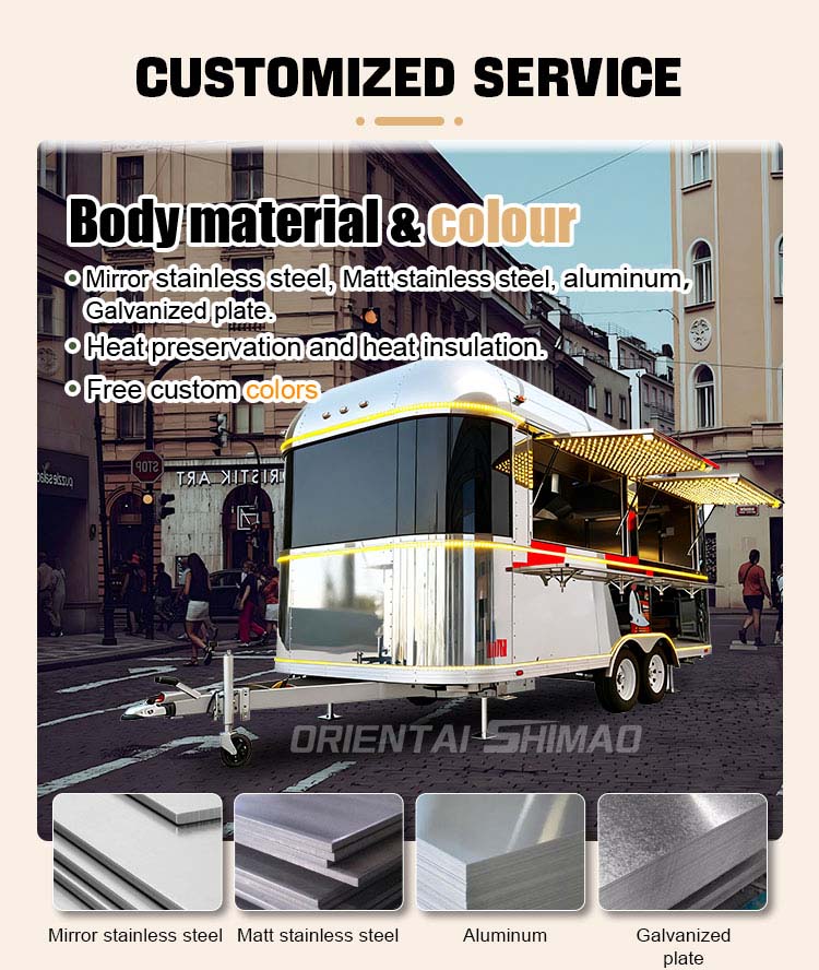 Materiaal en proces: Kies hoogwaardige materialen en een geavanceerd productieproces om ervoor te zorgen dat het uiterlijk van de foodtruck mooi en duurzaam is.
