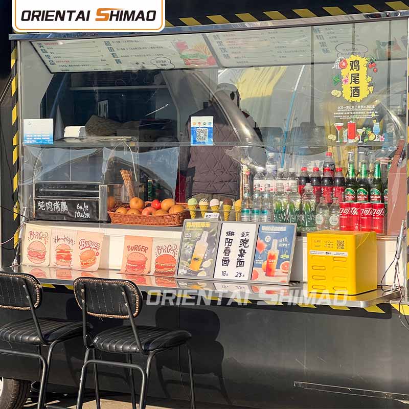 Veelzijdigheid: Om aan de behoeften van verschillende cateringscenario's te voldoen, is een verscheidenheid aan professionele kook- en opslagapparatuur in het voertuig ingebouwd, variërend van kookgerei tot opslagruimte voor ingrediënten, die kunnen voldoen aan de behoeften van gediversifieerde en zeer efficiënte cateringactiviteiten, en de operationele efficiëntie aanzienlijk kunnen verbeteren, of het nu gaat om koken op locatie of het bezorgen van fastfood.