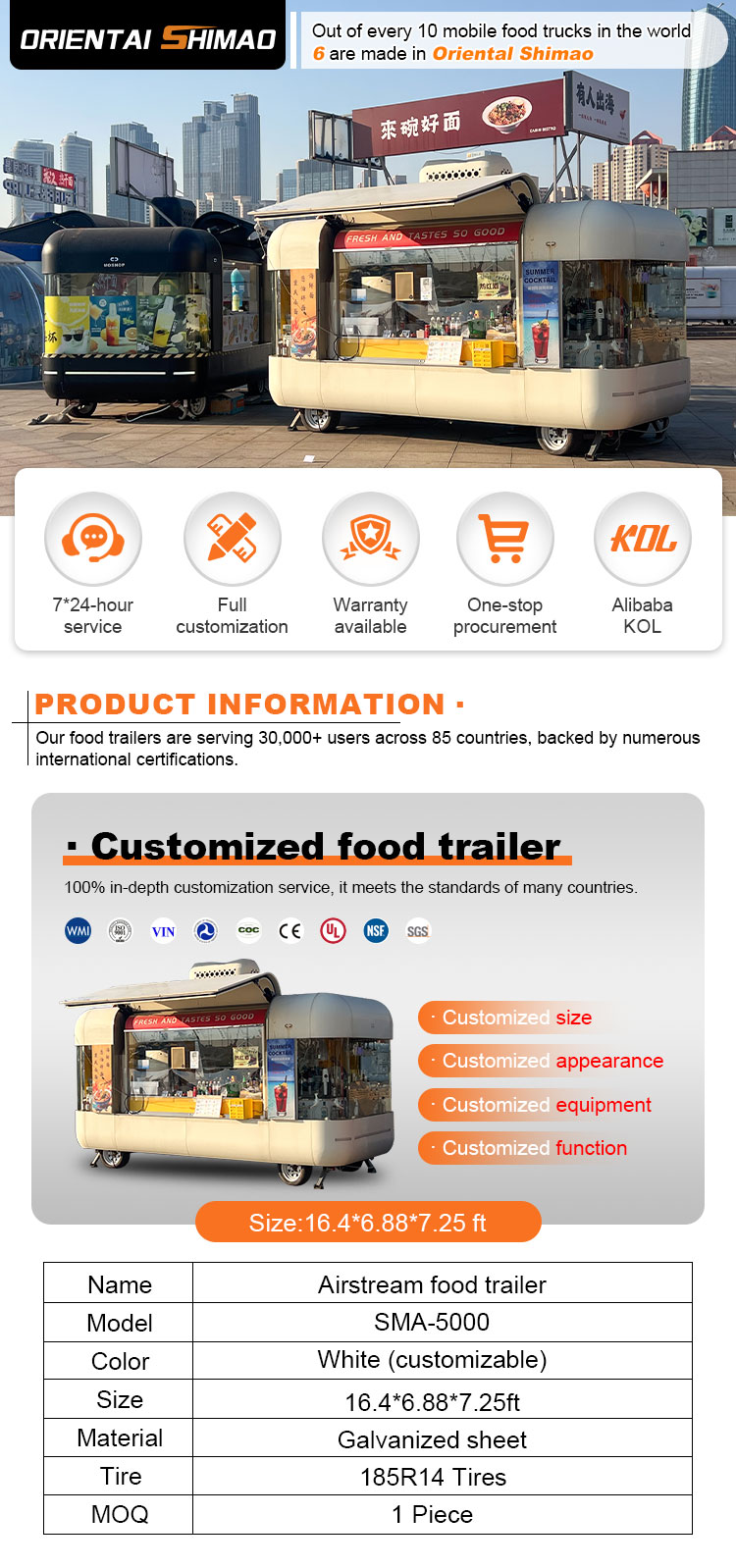 Als hoofdmateriaal hebben we gekozen voor hoogwaardig 304 roestvrij staal, dat bekend staat om zijn uitstekende corrosieweerstand en uitstekende duurzaamheid, en dat stabiele prestaties kan behouden in een verscheidenheid aan omgevingsomstandigheden, waardoor wordt gegarandeerd dat onze Food Catering Trailers-producten hun uitstekende kwaliteit en functionaliteit zelfs op de lange termijn kunnen behouden en met een verscheidenheid aan uitdagingen kunnen worden geconfronteerd. De uitstekende weerstand van roestvrij staal 304 tegen corrosie, zodat de truck niet gemakkelijk wordt aangetast door oxidatie of roest, wat de levensduur aanzienlijk verlengt. De uitstekende corrosieweerstand van 304 roestvrij staal maakt de Truck minder gevoelig voor oxidatie of roest, waardoor de levensduur aanzienlijk wordt verlengd.