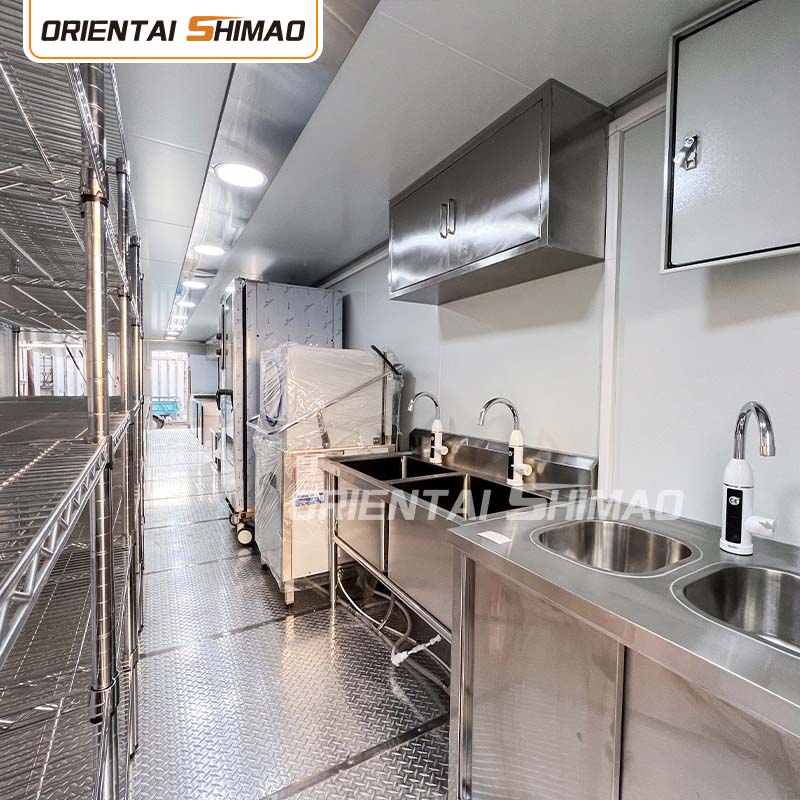 Interieurindeling: Redelijke planning van de keuken, eetkamer, opslagruimte en andere ruimtes om maximaal gebruik van de ruimte te garanderen. Tegelijkertijd worden verschillende functionele gebieden ingericht op basis van de zakelijke behoeften, zoals productieruimte, verwarmingsruimte, verkoopruimte, enz., om de bediening te vergemakkelijken en de operationele efficiëntie te verbeteren.