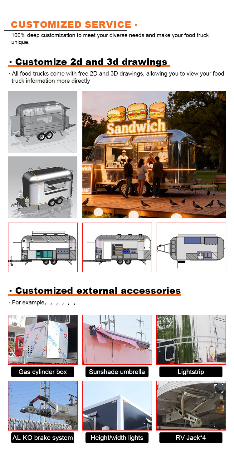 Voedselwagen Mobiele keuken Commerciële restaurantapparatuur Catering Elektrische voedselaanhangwagen Straatgebruik Foodtruck