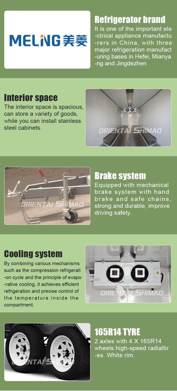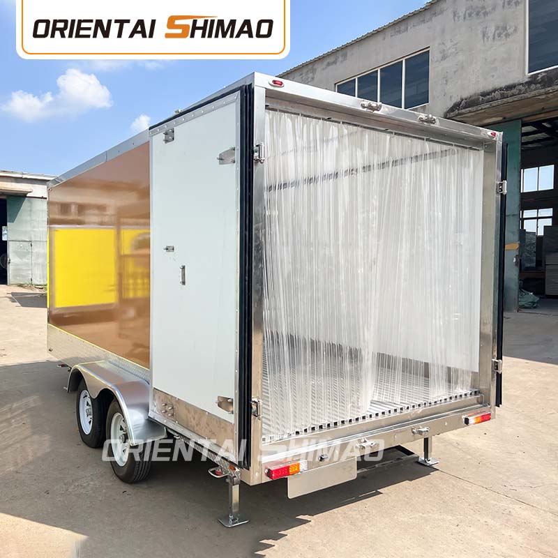 Duurzame materiaalopties: de aanhangwagenlichaam is verkrijgbaar in hoogwaardige composietpanelen of FRP (vezelversterkte plastic), beide bekend om hun uitstekende duurzaamheid, thermische isolatie-eigenschappen en weerstand tegen corrosie, wat zorgt voor langdurige prestaties in veeleisende omstandigheden.
