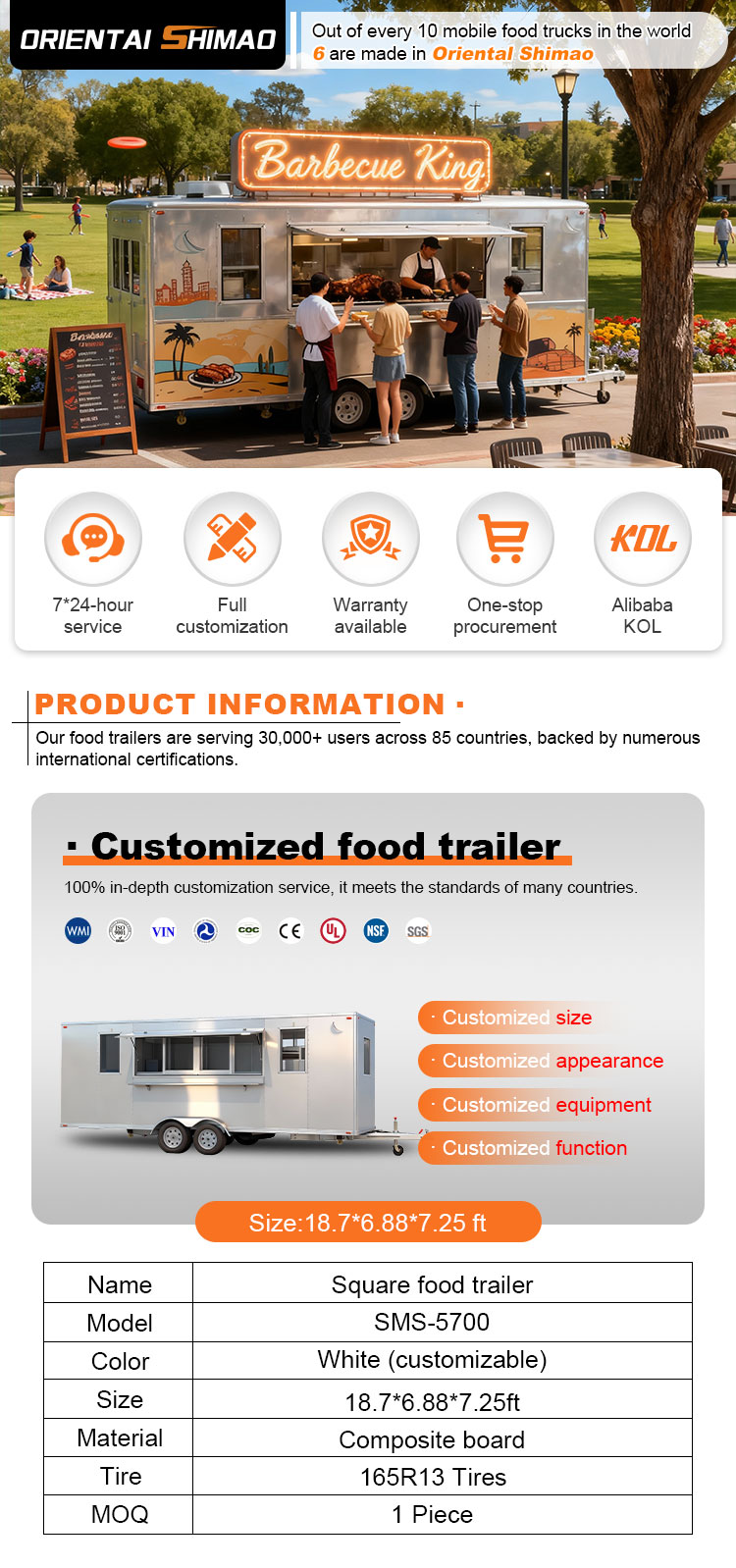 We kunnen certificeringen voor mobiele foodtrucks aanbieden: DOT, CE, SGS, SCI, ISO, COC,