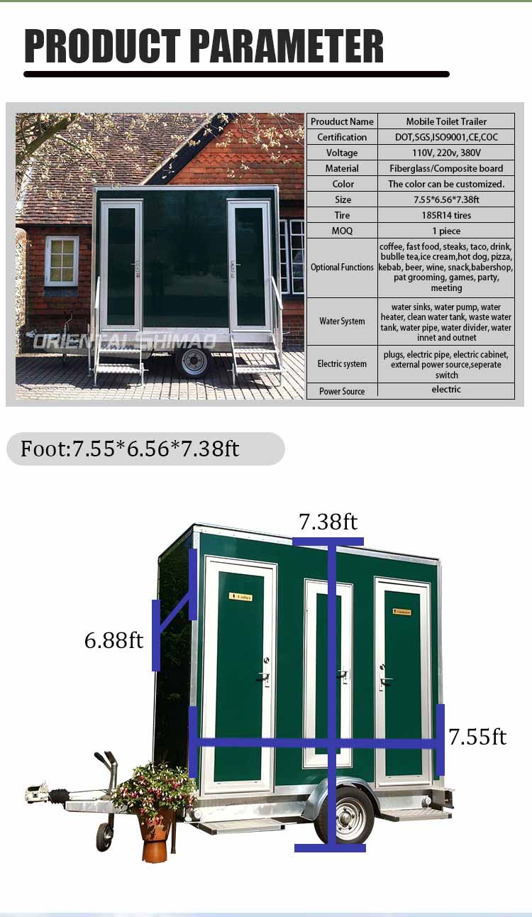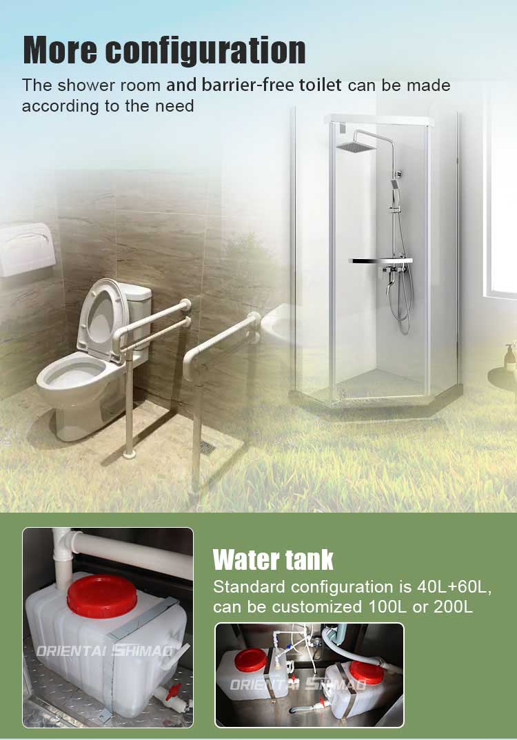 Oriental Shimao Mobile Toilet House is de optimale sanitaire oplossing voor een breed scala aan buitensites, tijdelijke faciliteitsbehoeften en noodsituaties. Met zijn moderne ontwerp en uitstekende functieset biedt het niet alleen gebruikers een comfortabele toiletervaring, maar verbetert het ook de hygiënestandaard van de hele locatie. Of het nu een groot evenement, bouwplaats of noodhulp is, deze draagbare toilettruck zorgt voor een schone en handige omgeving.