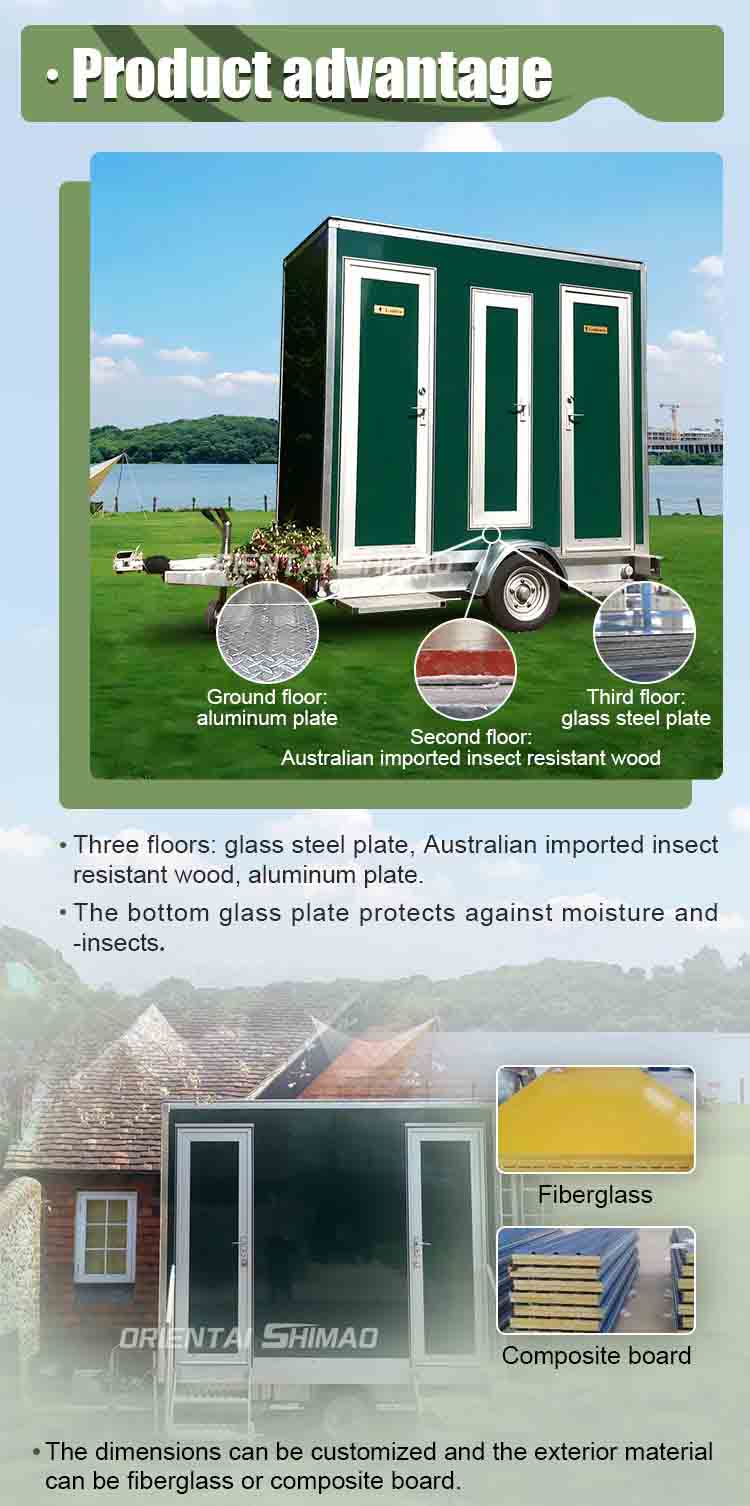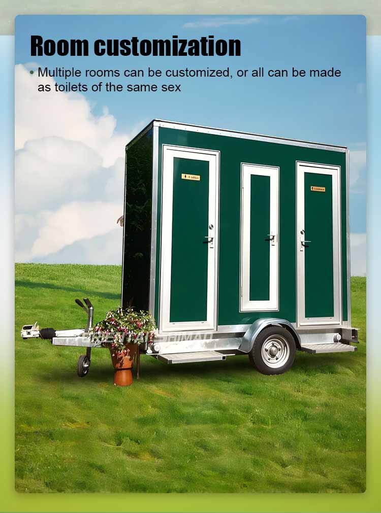 · Krachtige mobiele prestaties: dit mobiele toilethuis is uitgerust met high-performance banden en een versterkt ophangingssysteem om ervoor te zorgen dat het gemakkelijk met allerlei terreinen kan omgaan en stabiel en veilig kan worden verplaatst en ingezet, hetzij op een modderige bouwplaats of een ruige buitenlocatie.
