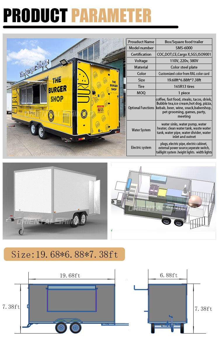 Ruimtelijkheid: het vierkante ontwerp van 4 meter biedt een ongekende hoeveelheid binnenruimte, waardoor de foodtruck meer apparatuur, ingrediënten en klanten kan huisvesten voor grote evenementen of catering tijdens piekuren.