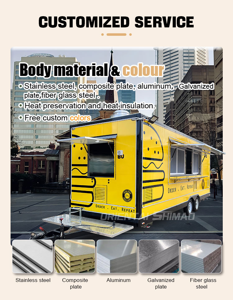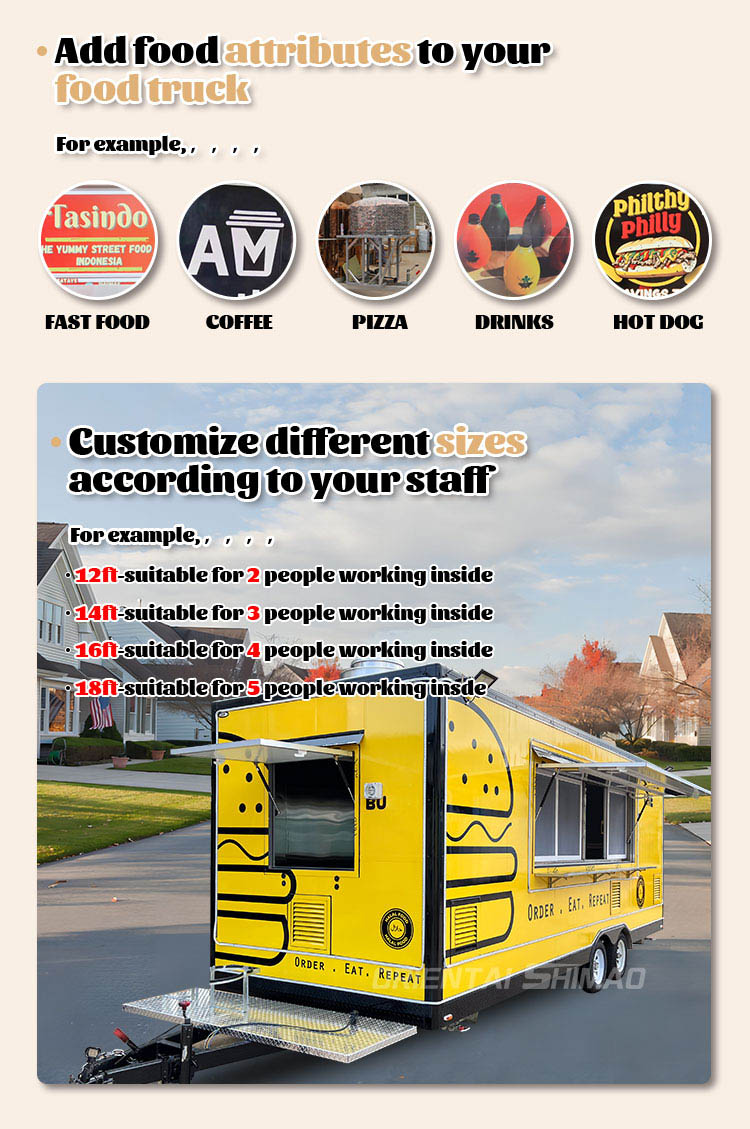 U hoeft alleen de productinformatie te verstrekken die u nodig heeft, onze senior verkoopmanager zal u aanbevolen producten geven, en vanaf het begin van de bestelling kan ons professionele ontwerpteam u het ontwerp geven dat bij uw ontwerp hoort, en vervolgens beginnen met de productie van uw foodtruck, u kunt uw fantasie de vrije loop laten om het product aan te passen, van binnen naar buiten, u kunt ook de benodigde apparatuur van onze kant van uw bedrijf kopen, waardoor u de moeite van het kopen en selecteren bespaart, de productie van het geheel geven wij u de oprichting van uw serviceteam, eventuele problemen met ons op elk moment. We zullen een serviceteam voor u opzetten en u kunt op elk moment met ons communiceren voor eventuele vragen. Na de productie sturen wij u een video voor uw inspectie, of u kunt naar de fabriek komen om de goederen te inspecteren, wij heten u van harte welkom!