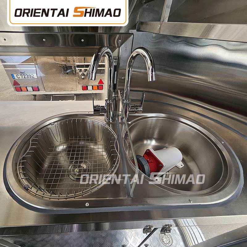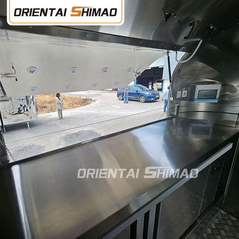 Kleine voedseltrailer vrachtwagen neemt roestvrij staal aan als het interne en externe materiaal, dat de duurzaamheid van het roestvrijstalen staal van de voedseltrailer aanzienlijk verbetert, heeft een uitstekende corrosieweerstand en oxidatieweerstand, die het uiterlijk en de prestaties lang zonder schade kunnen handhaven. En roestvrij staal is gemakkelijk te reinigen, anti-bacteriën, in overeenstemming met voedselveiligheid en hygiënische normen, om de hygiëne en veiligheid van voedselproductie en -verkoop te beschermen. In termen van uiterlijk heeft roestvrij staal een soepel, stevig en modern uiterlijk, dat het uiterlijk van de trailer -esthetiek kan verbeteren en het merkimago kan vergroten.