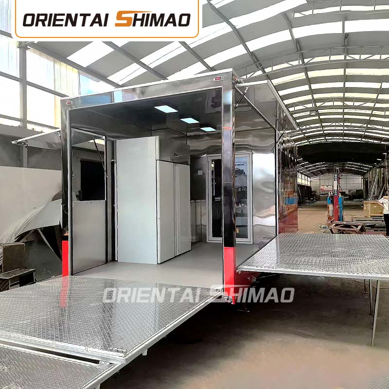 Extra functies: voeg andere extra functies toe volgens de behoeften van de klant, zoals koeling en behoud van versheid, verwarming en hittebehoud, waterdicht en anti-elektriciteit, enz., om de bruikbaarheid en veiligheid van de foodtruck te vergroten.
